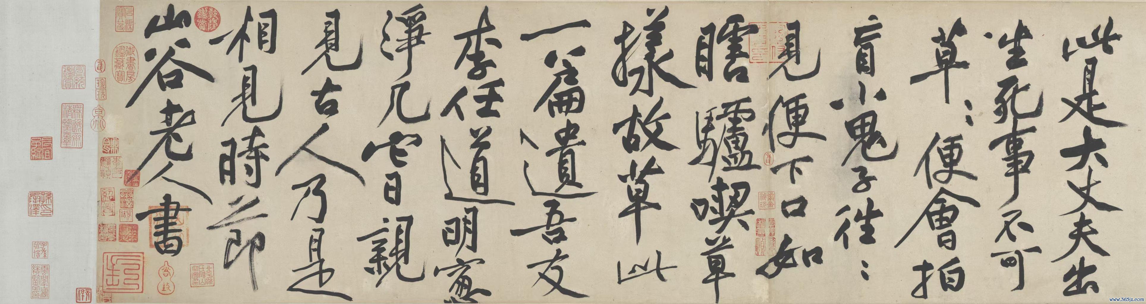 《诸上座帖》则是北宋大书道家黄庭坚的经典之作。黄庭坚身为“宋四家”之一以及“苏门四学士”成员,在中国书道史上占据着迫切地位。这幅作品是他为友东谈主李任谈全心录写而成,本色源自五代金陵僧东谈主高眼宗文益禅师的《语录》,不仅展现出其深广的书道艺术,还承载着特定的文东谈主来往与禅宗念念想传播的意旨。《诸上座帖》借鉴怀素狂草体,曾一度被定名为《摹怀素书》,该帖成书于黄庭坚晚年书艺最为训诫手艺,笔意纵横,威望渺茫雄健,字法奇宕古雅,尽显黄庭坚悬腕摄锋运笔的时髦书艺,被誉为黄庭坚传世法书的代表之作。《诸上座帖》传承有序,领先藏于南宋高宗内府,后归权相贾似谈;明代蜿蜒递藏于李应祯、中原、周亮工处,清初为孙承泽所顾惜,乾隆手艺收入内府。