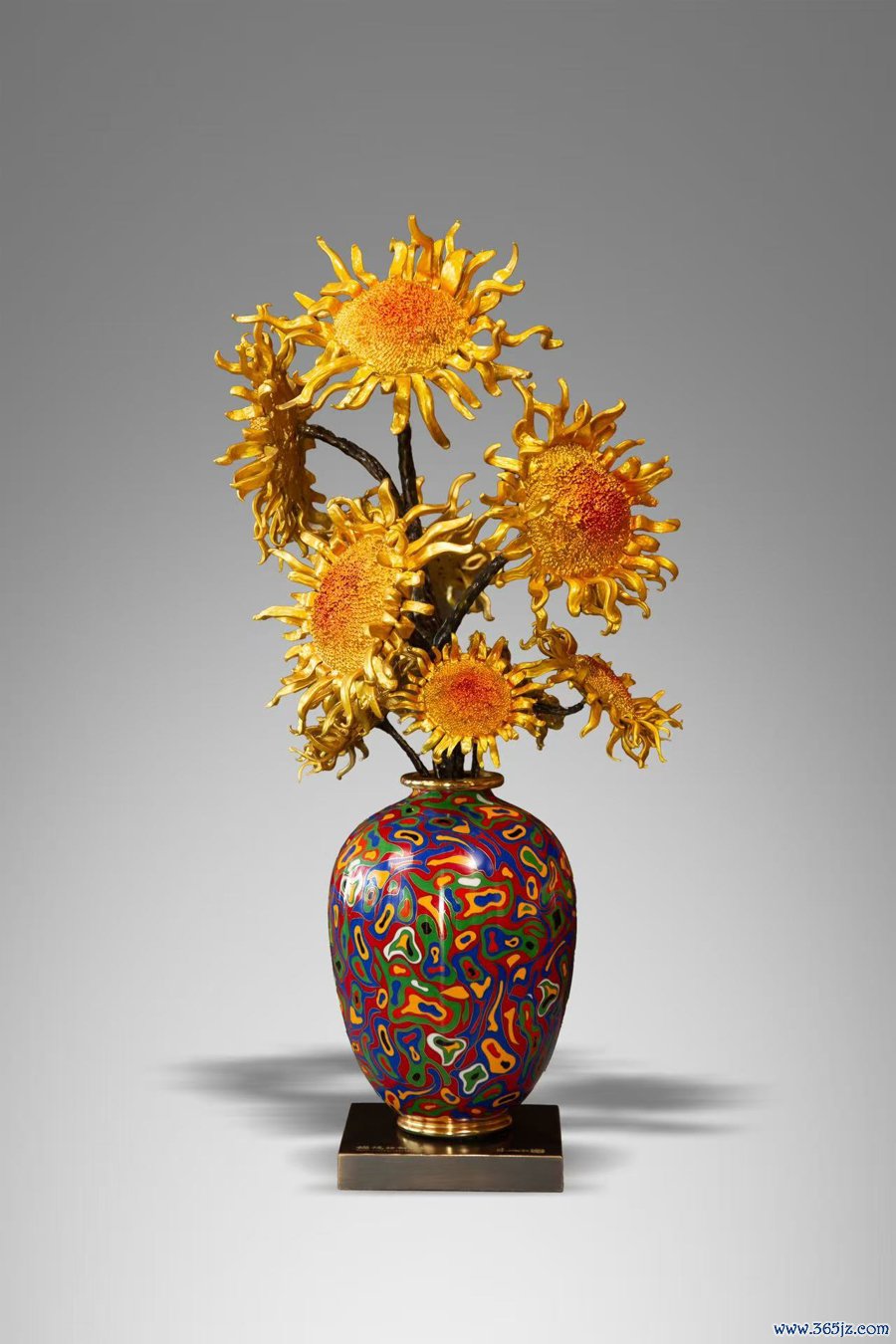 这次入藏的《千浪卷雪》《万里长城》《沉山河》等作品立意高远,威望磅礴,彰显中华好意思学的魁岸派头;《国鹿》《青花铜瓶》源于传统,区分以私有的“动感”塑造和精妙的色调搭配,突显改进道理;《毁掉的向日葵》以光显的改进特点见长,期骗熔铜手法塑造了敷裕人命力的向日葵形象,不仅体现中华好意思学意蕴,况兼敷裕现代气味,酿成与西方艺术的对话。